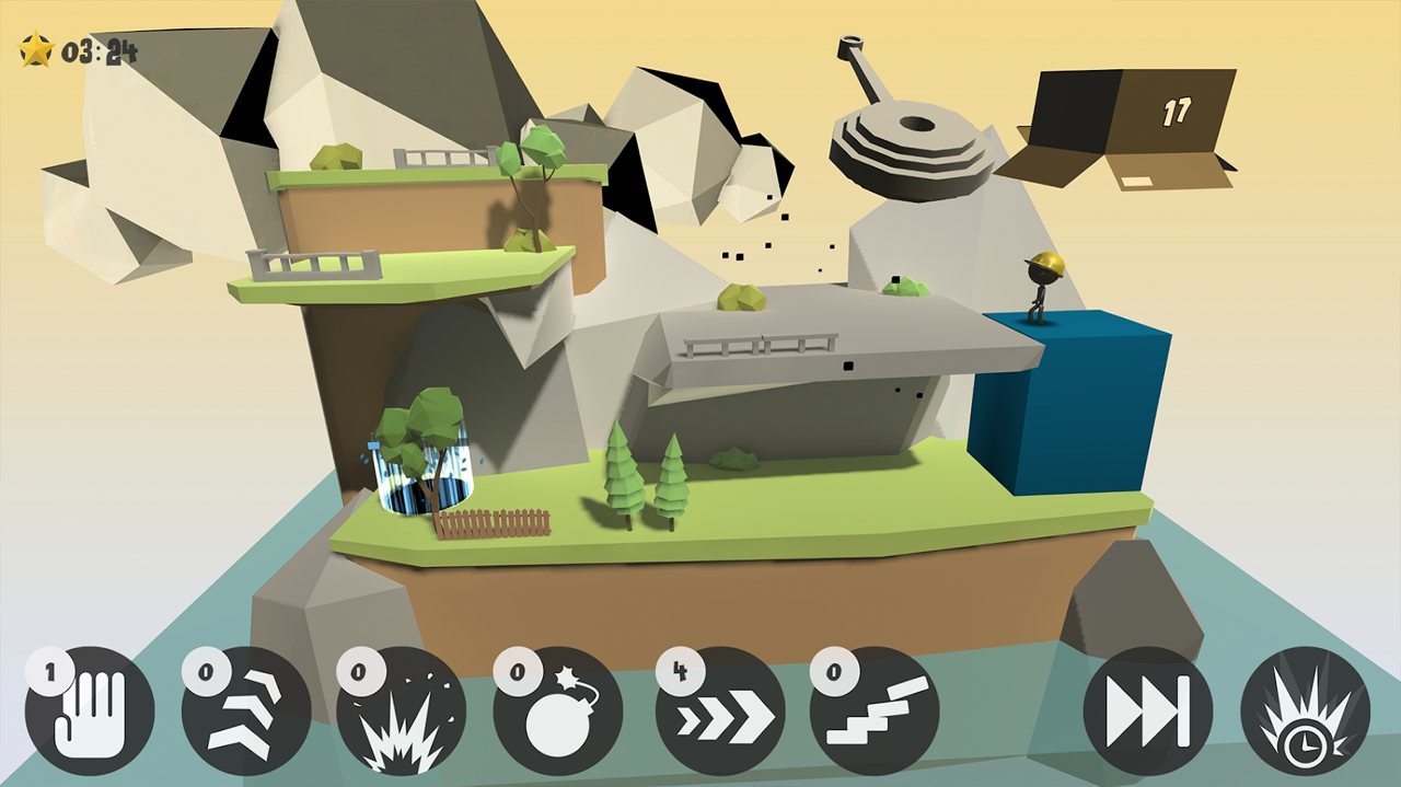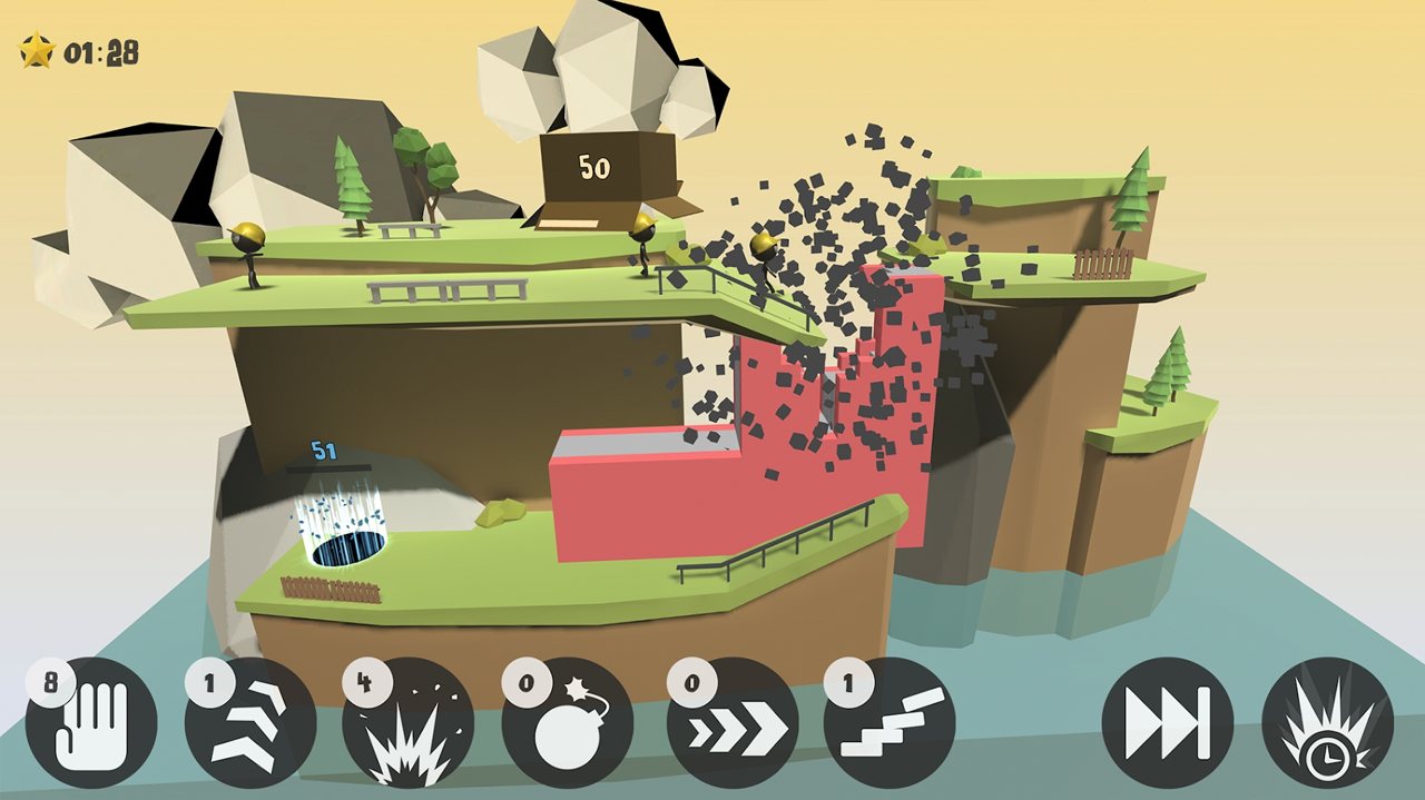2、超过20种特殊能力构成策略核心,从常规的跳跃架桥到疯狂的自我毁灭,每种技能都配有专属粒子特效。奖牌系统设置了三阶难度挑战,金牌要求需在限定时间内完成隐藏任务,而失败时触发的火柴人集体爆炸动画,会以慢镜头呈现幽默的灾难场景。