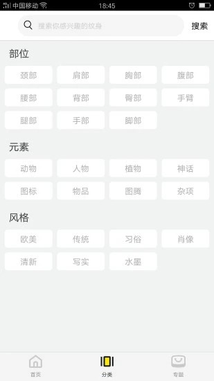 智能分类系统,按照身体部位(手臂、背部、腿部等)、图案风格、文化元素等多维度进行精准分类,帮助用户快速定位所需图案。