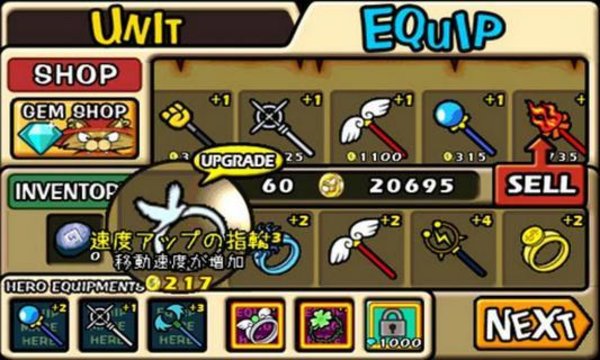 7、丰富的装备系统:为英雄准备了20余种可装备的道具,玩家可以根据战斗需求自由搭配。