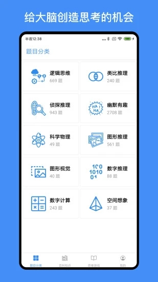 3、题目库持续更新,涵盖文字、数字、图形等多种类型,支持多人竞技和社区分享功能,让思维训练变成一种社交乐趣。