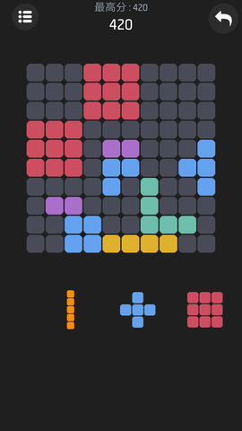 1、创新拖动模式:玩家可以将3个备选方块自由拖放至棋盘任意位置,当拼成完整的行或列时即可消除得分。这种模式考验玩家的空间布局能力,当棋盘空间不足时游戏结束,极具挑战性;