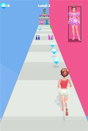 3.在跑酷闯关的过程中,跑道两侧会随机出现各种风格的漂亮服装,包括公主裙、运动装、职业套装等丰富选择,当然你只能选择一侧的服饰,如何搭配出最佳造型就需要玩家发挥时尚眼光来决定了。
