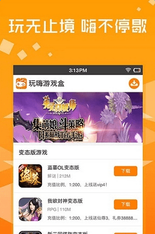 还在为游戏打不过别人而烦恼吗?被同服玩家虐得毫无还手之力?《玩嗨游戏盒》将彻底改变你的游戏体验!这款全能型游戏平台集BT版、破解版、修改版游戏于一体,提供海量精品手游资源、最新游戏资讯和超值福利活动。清爽简洁的界面设计搭配强大功能,让你轻松下载各类热门游戏,无论是竞技对战还是休闲娱乐,都能获得极致畅快的游戏体验,从此告别被吊打的烦恼!