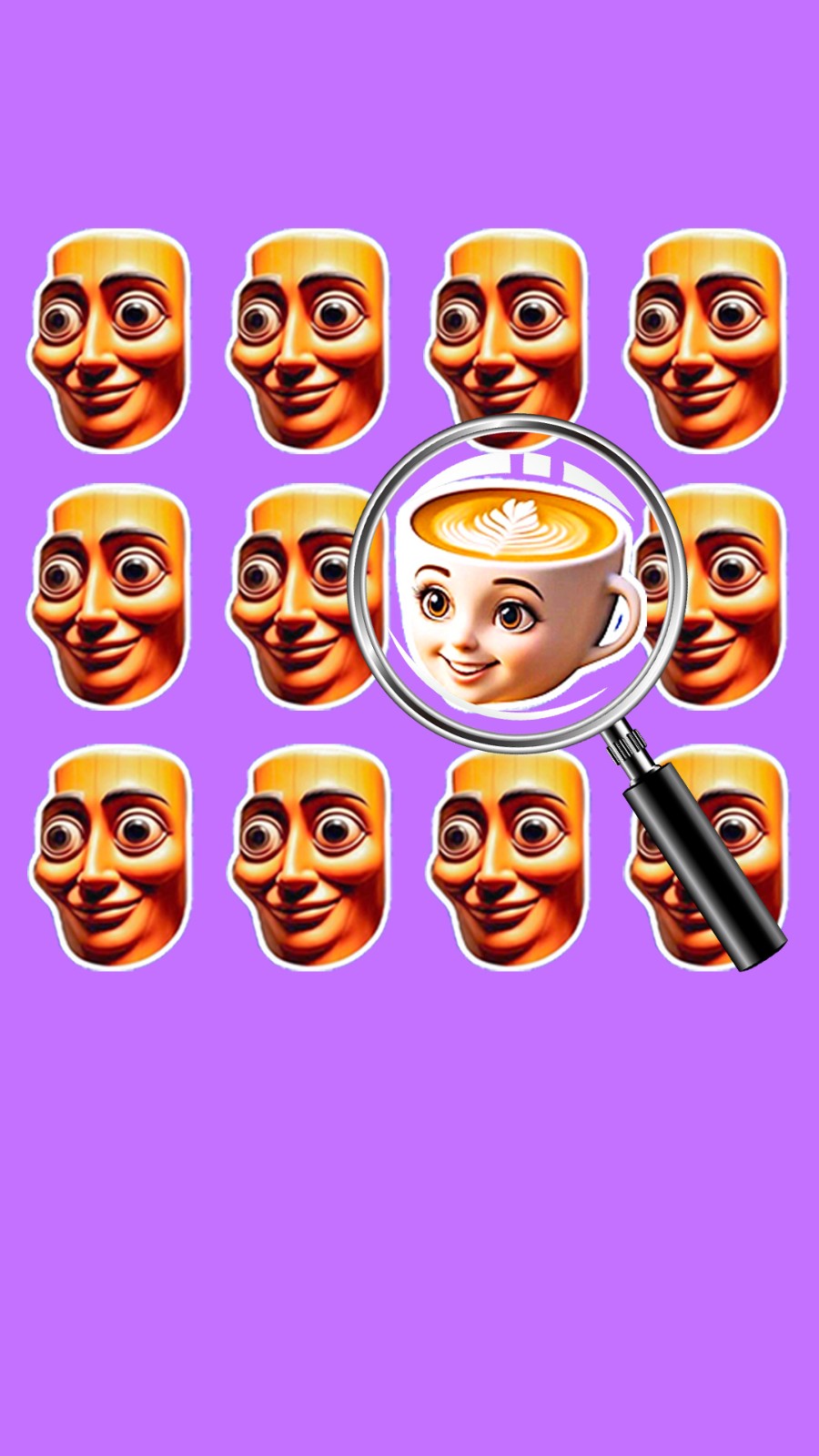 一眼看去,一大堆相似的表情,仔细观察之后,你就会发现不同的那一个。游戏采用渐进式难度设计,初期差异明显,后期可能需要放大镜才能发现细微差别。建议先整体浏览,再分区检查,系统性的观察方法能提高成功率。