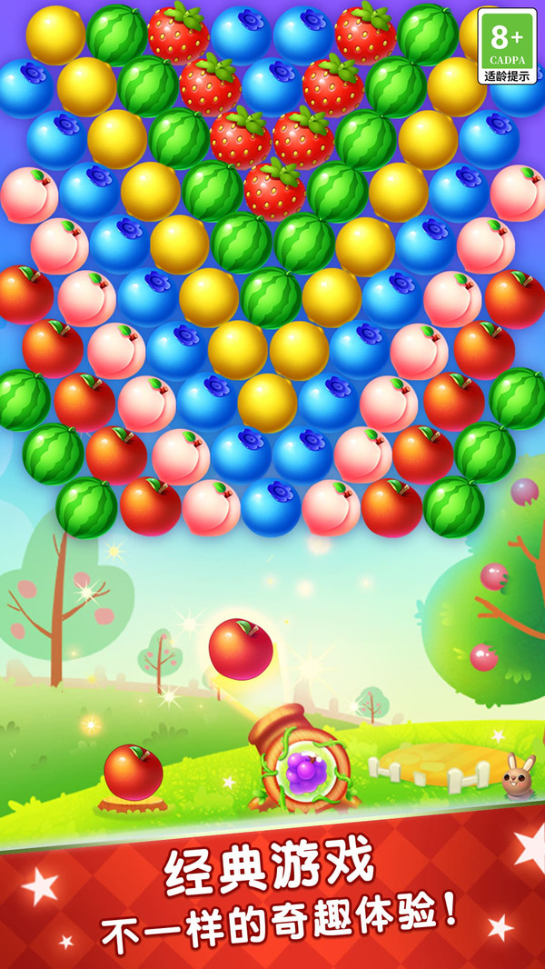 1、游戏中包含多种不同颜色的水果泡泡,玩家需要通过匹配消除它们,完成关卡目标。
