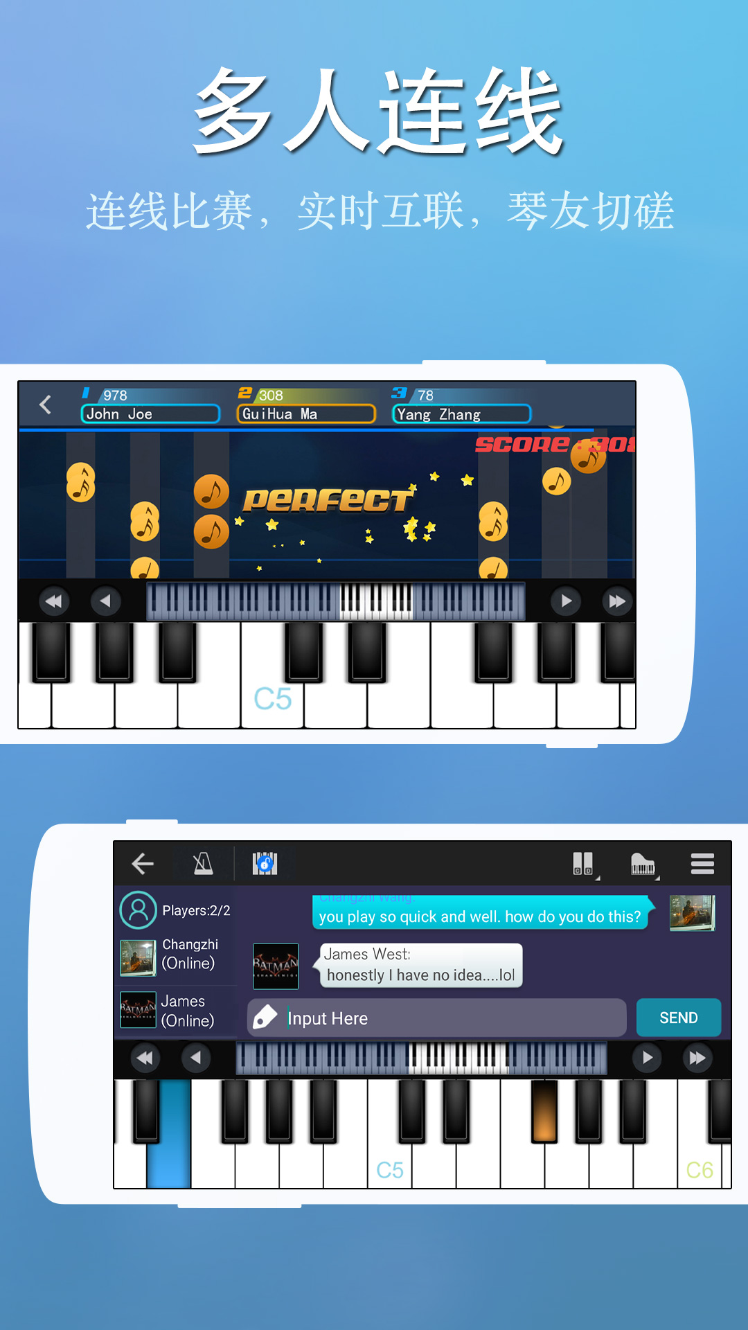 全球多人比赛系统让音乐交流突破地域限制。除了个人练习外,你可以参与线上钢琴比赛,与来自世界各地的钢琴爱好者同台竞技。系统会根据演奏准确度、节奏感和表现力进行评分,让你在竞争中不断进步。