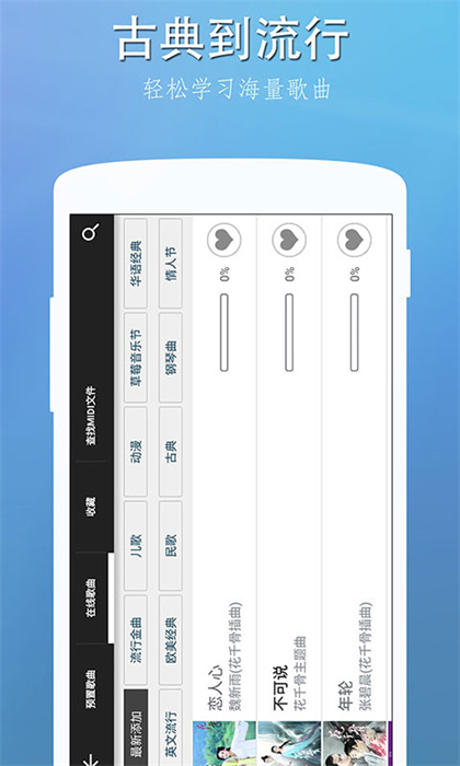 软件内置了上千首精心编排的曲谱库,涵盖古典、流行、爵士等多种音乐风格。每首曲目都经过专业编配,提供完整的演奏指导。A->B循环功能可以让用户专注于特定段落反复练习,左右手设置则支持分声部学习。系统提供三种直观的引导模式:落球模式适合初学者快速上手;瀑布流模式模拟专业钢琴教学软件;五线谱模式则帮助用户提升识谱能力。此外,用户还可以根据自身水平调节歌曲难度和速度,循序渐进地提升演奏技巧。