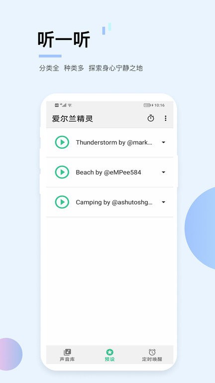 2、用户友好的交互界面,操作简单直观。支持自定义播放列表、定时关闭、音量调节等功能,让放松体验更加个性化。
