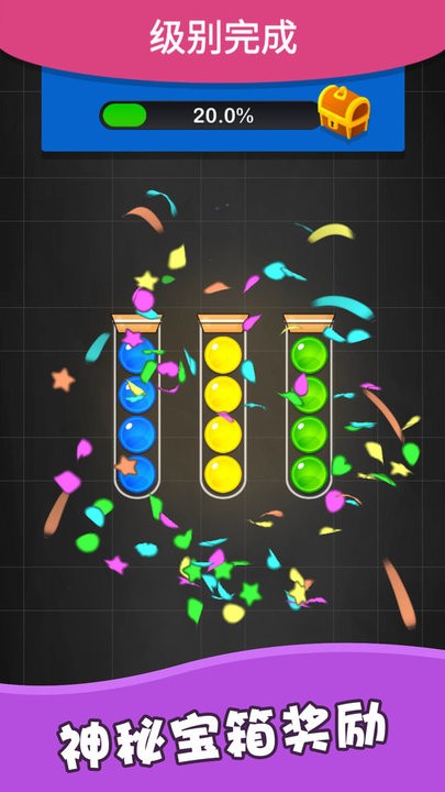 游戏的核心目标是将所有不同颜色的彩球完美归集到指定容器中。随着关卡推进,彩球数量和颜色种类会逐渐增加,为玩家带来持续的新鲜感和挑战性。