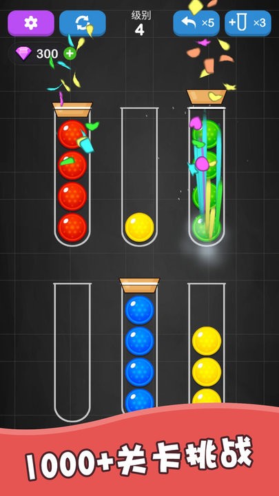 游戏采用直观易懂的彩球排序机制,玩家只需通过简单的点击和滑动操作,就能将玻璃杯中的彩色球按照颜色进行精准分类。这种看似简单的玩法背后蕴含着丰富的策略性,需要玩家仔细思考每一步操作。