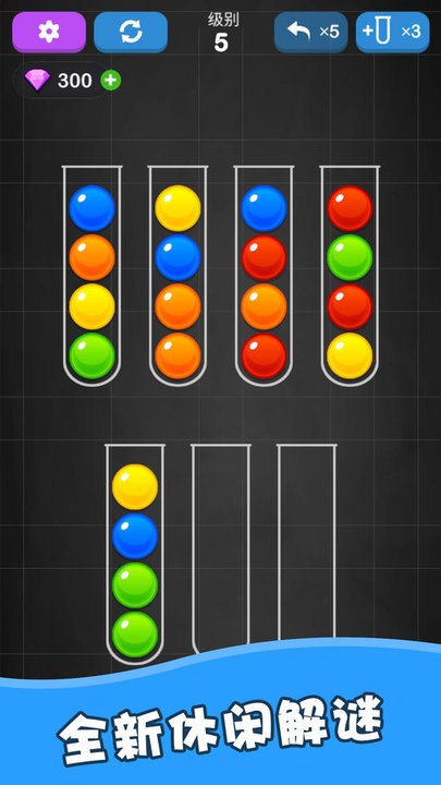 游戏操作极其简便,只需轻触屏幕即可完成所有操作。通过直观的拖放和点击,玩家可以轻松将相同颜色的彩球转移到指定位置,体验流畅而富有成就感的排序过程。