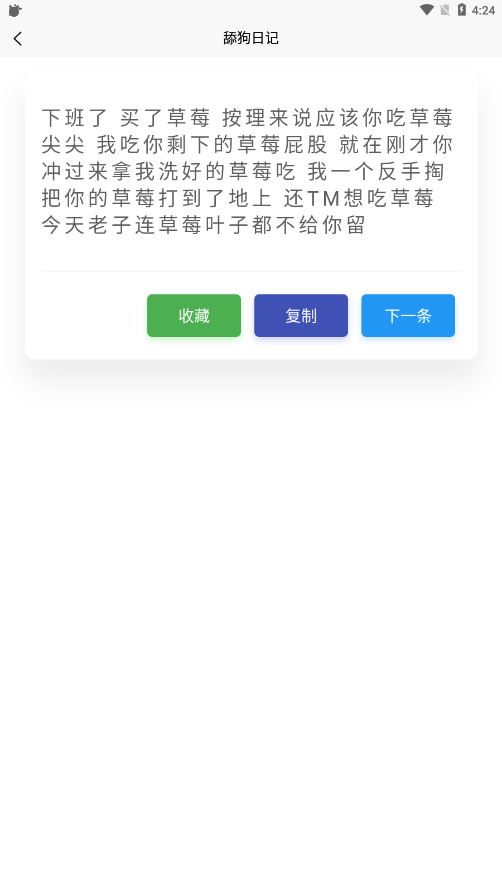 超强语录app是一款功能强大的手机语录生成工具,专为喜欢收集和分享各种趣味语录的用户设计。这款应用涵盖了多种类型的语录内容,包括舔狗语录、精神语录、奇葩对话、土味情话等,满足不同场景下的需求。用户只需一键操作,即可快速生成心仪的语录内容,并支持轻松复制到剪贴板,方便直接分享到社交平台或聊天软件。无论是日常娱乐、社交互动,还是朋友圈文案创作,超强语录app都能为你提供海量灵感,让你的表达更加生动有趣。