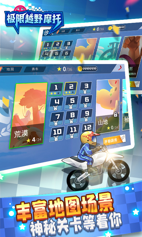 1、丰富的地图场景和神秘的关卡等着你。从城市街头到野外丛林,超过30条特色赛道各具挑战,隐藏关卡更会随机触发特殊事件,让每次比赛都充满新鲜感。