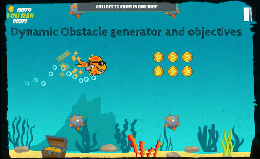 《水下危机UnderwaterCrisis》是一款充满挑战与乐趣的跑酷类手游,玩家将操控一条戴着墨镜的酷炫小鱼,在危机四伏的海洋中展开冒险。通过轻触屏幕控制小鱼的上浮和下潜,灵活躲避沿途的电网障碍,同时收集闪闪发光的金币。游戏节奏紧张刺激,随着距离的增加,难度也会逐步提升,考验玩家的反应速度和操作技巧。独特的海洋主题搭配动感音效,带来沉浸式的游戏体验。快来加入这场深海逃亡,看看你能带领小鱼游多远吧!