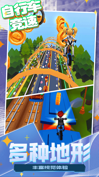 自行车竞速是一款融合竞速与跑酷元素的休闲游戏,玩家将驾驶Q版风格的自行车在各种场景中飞驰。游戏不仅需要灵活操控躲避障碍,还要收集沿途金币提升分数。多样化的赛道设计搭配清新可爱的画面风格,为玩家带来轻松愉快的竞速体验。无论是单人挑战还是与全球玩家比拼排行榜,都能感受到速度与激情的碰撞。每日任务和特殊成就系统更让游戏充满持续挑战的乐趣。