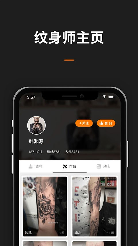 每张纹身图案都标注原创作者信息,用户可直接联系纹身师咨询,确保纹身作品的专业性;