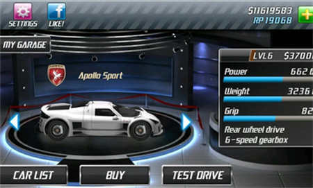 购买你的梦想座驾,自由调校升级爱车并在1/4或1/2英里直线加速赛上展现你的驾驶技术!游戏提供深度的车辆改装系统,玩家可以自由调整引擎、悬挂、轮胎等参数,打造性能独特的专属赛车。