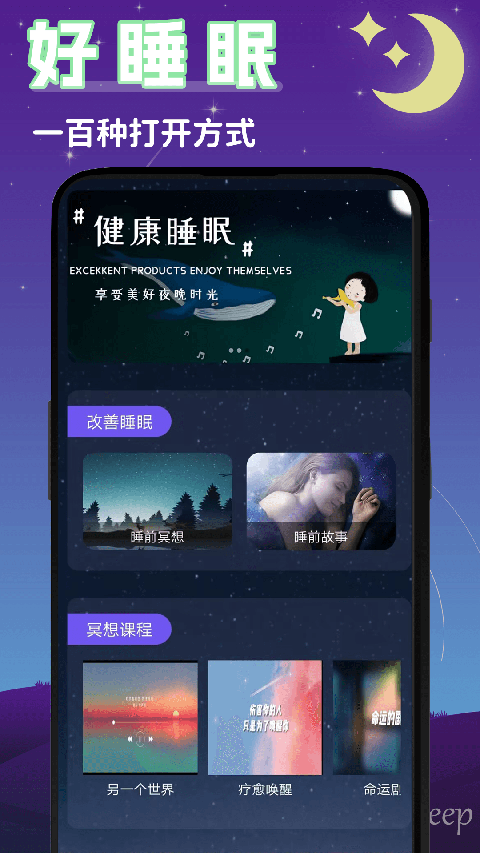 失眠困扰时,精心录制的"睡前故事"由专业配音师演绎,配合舒缓的背景音乐,营造温馨的入睡氛围,带领用户缓缓进入甜美梦乡。