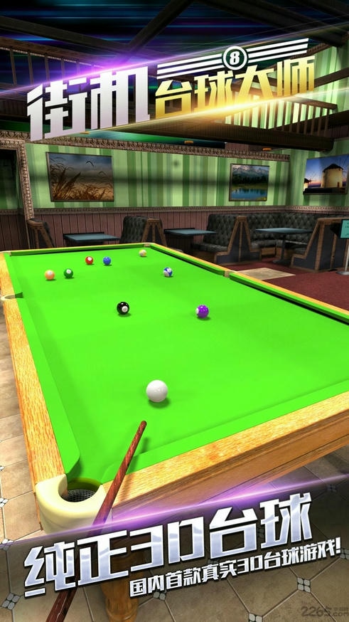 街机台球大师老版本是一款深受玩家喜爱的经典对战类台球游戏,凭借其出色的3D建模技术和逼真的物理引擎,为玩家带来身临其境的台球体验。游戏不仅完美还原了现实中的8球玩法,还提供了多种趣味十足的游戏模式,让每位台球爱好者都能找到属于自己的乐趣。简单易上手的操作方式搭配丰富的游戏内容,保证让你一玩就停不下来。如果你也是台球运动的忠实粉丝,那就快来2265安卓网下载体验吧!
