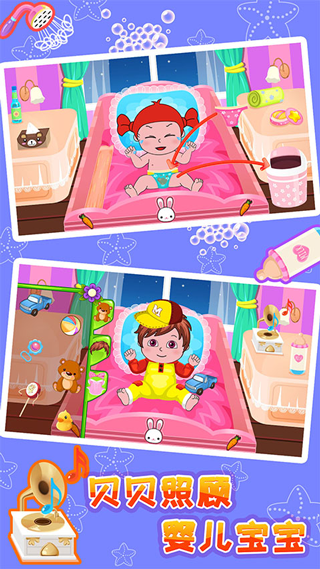 贝贝照顾婴儿宝宝是一款专为儿童设计的趣味益智游戏,采用清新可爱的卡通风格,为孩子们打造了一个充满童趣的虚拟世界。游戏中通过生动有趣的互动环节,如洗澡、穿衣、哄睡等日常活动,帮助小朋友们在玩耍中学习生活常识。简单直观的操作方式让幼儿能够快速上手,独立完成游戏任务,既培养了孩子的自理能力,又减轻了家长的负担。这款寓教于乐的游戏不仅能带给孩子们欢乐时光,还能潜移默化地培养他们的生活技能和良好习惯,是家长们的理想选择。