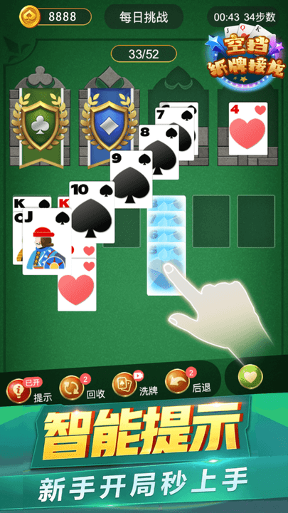 空挡纸牌接龙最新版是一款集趣味性与挑战性于一体的手机纸牌模拟接龙游戏。这款游戏不仅延续了经典纸牌接龙的核心玩法,还融入了创新元素,为玩家带来全新的益智体验。游戏采用精美的画面设计和生动的背景音乐,让玩家在轻松愉悦的氛围中享受烧脑的纸牌接龙挑战。无论是休闲娱乐还是锻炼脑力,这款游戏都能满足您的需求。多种玩法模式和难度选择,让游戏体验更加丰富多彩。如果您喜欢纸牌游戏,不妨下载试试,相信您一定会爱上它!