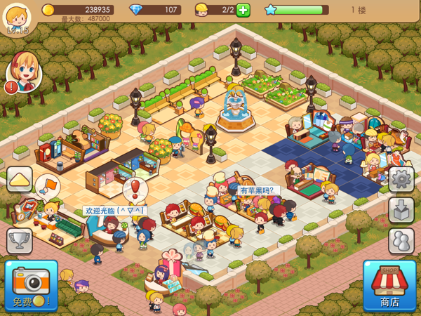 建造多种建筑,设施比如:餐厅,烘培店,服装店,电子游戏中心等等。游戏提供了超过20种基础建筑类型,每种都可以通过升级解锁全新外观和功能,让你的商业街不断进化。随心所欲的设计、布置、创造、拓展属于自己的购物商店,并设法吸引更多可爱的顾客,举行大热卖,疯狂赚取金币。你可以举办季节性促销活动,设计特价商品组合,甚至举办街区庆典来吸引人潮。拥有多种独特设施的商店游戏,每个星期都将更新和增加更多精彩新内容。开发团队承诺每月推出大型更新,包括新店铺类型、装饰物品和游戏机制。创造出自己美丽独特的商店!拓展你的商场,提升设施并上线参阅谁是最好的商店大亨!通过精心规划的店铺布局和持续的设施升级,让你的商业街成为全球玩家羡慕的对象。