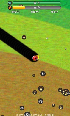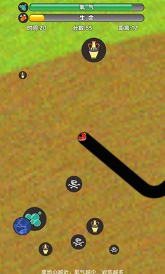 这是一款以吞噬为主题的休闲游戏,玩家只能控制角色进行右转移动。在单人模式下,建议先在地表区域谨慎行动,因为这里的氧气消耗较慢,可以确保生存。当生命值积累到较高水平后,就可以深入地下寻找珍贵的钻石,每个钻石能带来1000分的高额奖励。虽然操作失误难免会碰到障碍物,但只要不是连续撞击就不会造成致命后果。多人模式下则可以采用顺时针跑动的策略,不断吞噬其他玩家来壮大自己。