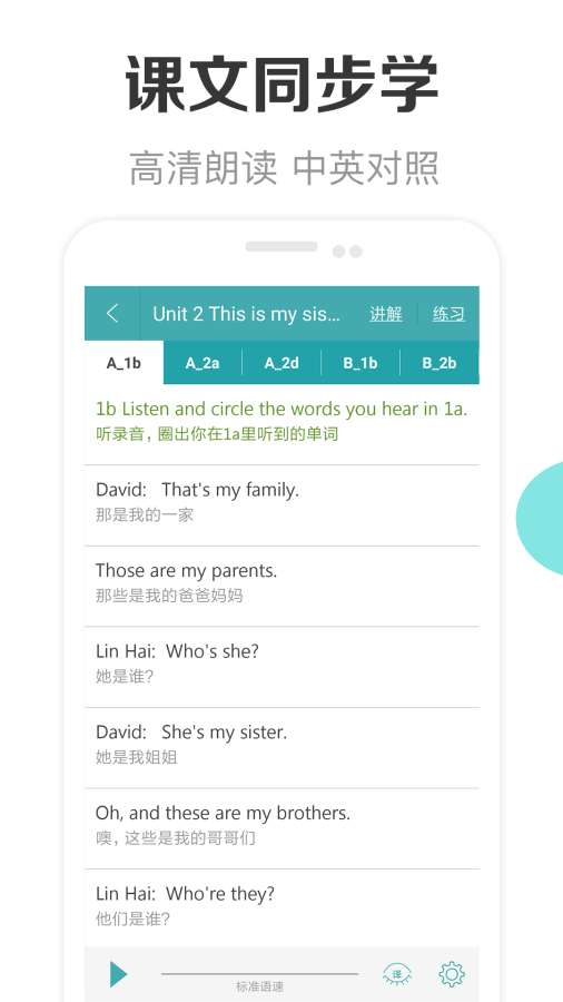 初中英语助手拥有丰富的学习资源,包括从七年级到九年级的新课程标准单词和课文,所有内容都配备了高清真人发音,学生可以随时跟读练习。软件对每个单元的重要语法和知识点都进行了详细讲解,帮助学生深入理解英语知识。此外,每个单元都配有相应的练习题,并提供详细的答案解析,让学生能够及时查漏补缺。