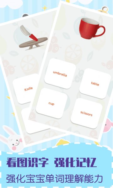 幼儿早教英语是一款专为3-8岁儿童设计的趣味英语启蒙应用,通过创新的卡片式学习模式,帮助小朋友们在轻松愉快的氛围中掌握基础英语知识。这款应用收录了丰富的动植物、日常生活用品等词汇,每个单词都配有标准发音、生动图片和趣味互动,让孩子在玩耍中自然习得英语。爸爸妈妈可以随时陪伴孩子一起学习,不仅能增进亲子关系,还能共同体验语言学习的乐趣。