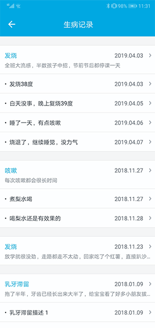 然后就可以在首页查看自己记录的内容啦!所有记录都会按照时间线自动排列,支持按日期、年龄、类型等多种方式筛选查看。点击任意记录还能进行二次编辑或添加补充内容。