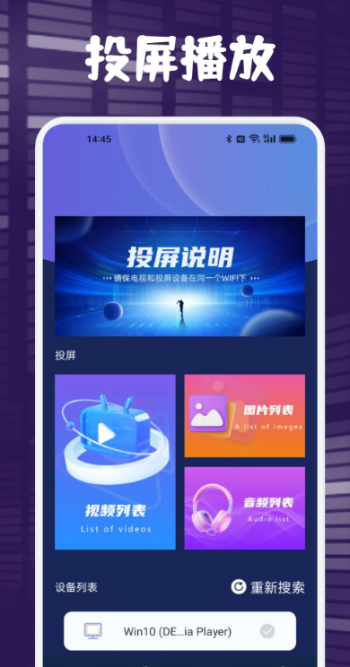 支持多种投屏协议,包括Miracast、AirPlay、DLNA等,覆盖市面上绝大多数智能设备。