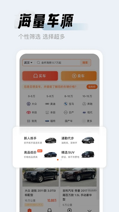 操作便捷:简洁的界面设计,轻松完成车辆搜索和交易。信任度高:平台认证车源和真实用户评价,提升交易信任感。省钱省心:直卖模式让买卖双方直接沟通,节省额外费用。社区互动:用户可分享购车经验,形成活跃的二手车交流社区。个性化推荐:根据用户浏览习惯智能推送感兴趣的车源。品牌口碑:多年行业积累,成为二手车领域的知名品牌。