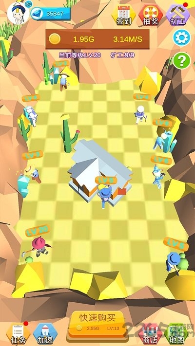 挖矿速度影响着你的收入,只有招募到更多高级的人才,你才能够轻松的完成任务;高级矿工不仅效率更高,还能解锁特殊矿区。