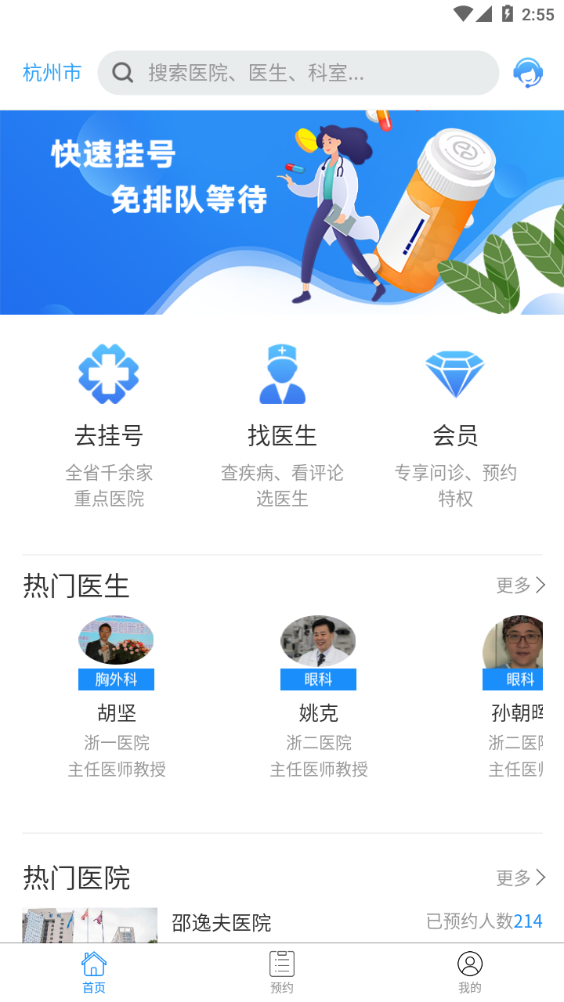 提供浙江省500家重点医院预约挂号服务,覆盖所有三甲医院和专科医院;