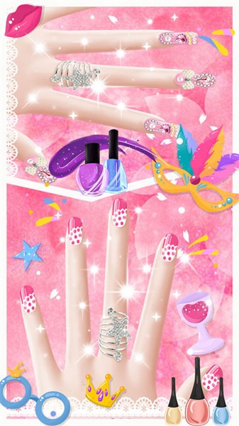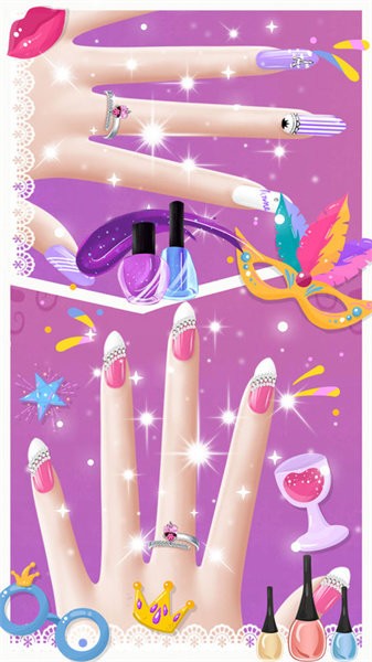 超多可爱的公主角色,每位公主都有独特的风格和故事背景,玩家可以根据不同场合为她们设计专属美甲造型;