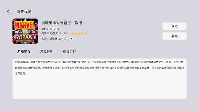 多平台兼容:适配智能电视及电视盒子,无需额外设备即可畅玩经典游戏。无论是小米盒子、天猫魔盒还是其他主流电视设备,都能完美运行。