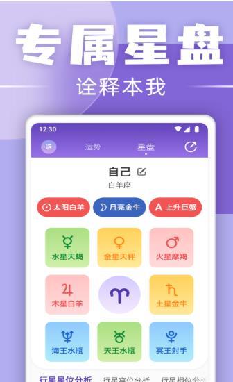 行星相位追踪:实时显示行星位置及相位变化,帮助用户理解星象影响。