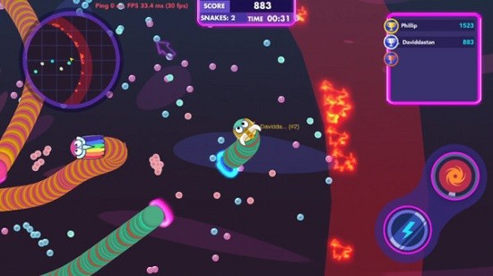 贪食蛇作战采用了竞技性十足的玩法模式,虽然操作难度适中,但通过多次练习,玩家可以掌握更多战斗技巧,不断提升自己的水平。游戏提供了超多的造型装饰供玩家解锁,让你可以打造出独一无二的小蛇形象,成为竞技场上最亮眼的存在。游戏画面表现力极强,竞技场上会出现各种颜色和造型不同的小蛇,整个场景热闹非凡,充满了欢乐的氛围。
