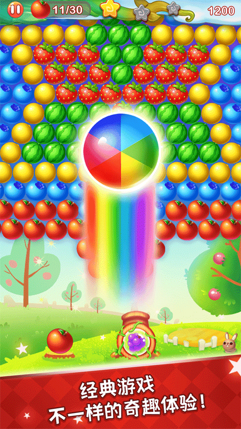 水果泡泡传奇是一款集休闲娱乐与益智挑战于一体的Q萌泡泡龙游戏。在这个梦幻般的游戏世界里,玩家将化身勇敢的小女巫猫安吉拉,穿梭于五彩斑斓的水果泡泡群中展开冒险。游戏不仅考验玩家的反应能力,更注重策略运用。你需要帮助安吉拉解救被困的小猫咪,捕捉水果上的七星瓢虫,收集闪耀的星光。特别值得一提的是,游戏中的连击系统会随机掉落惊喜道具奖励,这些道具能助你轻松达成完美通关。还在等什么?快用你的智慧手指划出精彩,开启这段妙趣横生的水果泡泡奇幻之旅!
