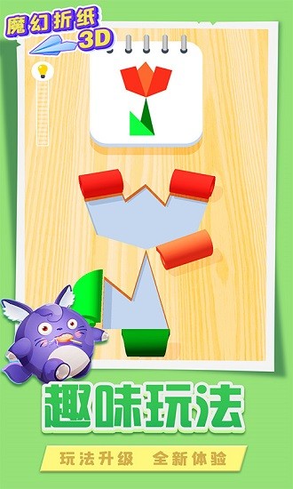 魔幻折纸3D是一款极具创意和艺术感的休闲益智游戏,非常适合在闲暇时光静下心来体验。游戏以折纸艺术为核心玩法,结合了剪纸、拼图和3D建模等元素,为玩家带来独特的沉浸式体验。这里有数百个精心设计的关卡,每个关卡都有不同的折纸需求和挑战目标。前期的关卡难度适中,玩家可以慢慢熟悉操作步骤和游戏机制,随着关卡的推进,挑战会逐渐升级,让你在享受成就感的同时不断提升技巧。