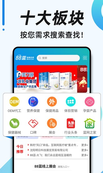 88蓝健康产业网app是一款专注于健康产业招商与管理的综合性平台,致力于为用户提供一站式解决方案。该平台汇聚了丰富的健康产品资源,涵盖自主研发的各类优质项目,从招商到管理功能一应俱全。用户可以通过app轻松查询感兴趣的产品信息,同时享受便捷的招商对接服务。凭借12年的行业积淀和良好口碑,88蓝app已成为健康产业从业者的得力助手,帮助用户高效完成业务拓展与资源整合。