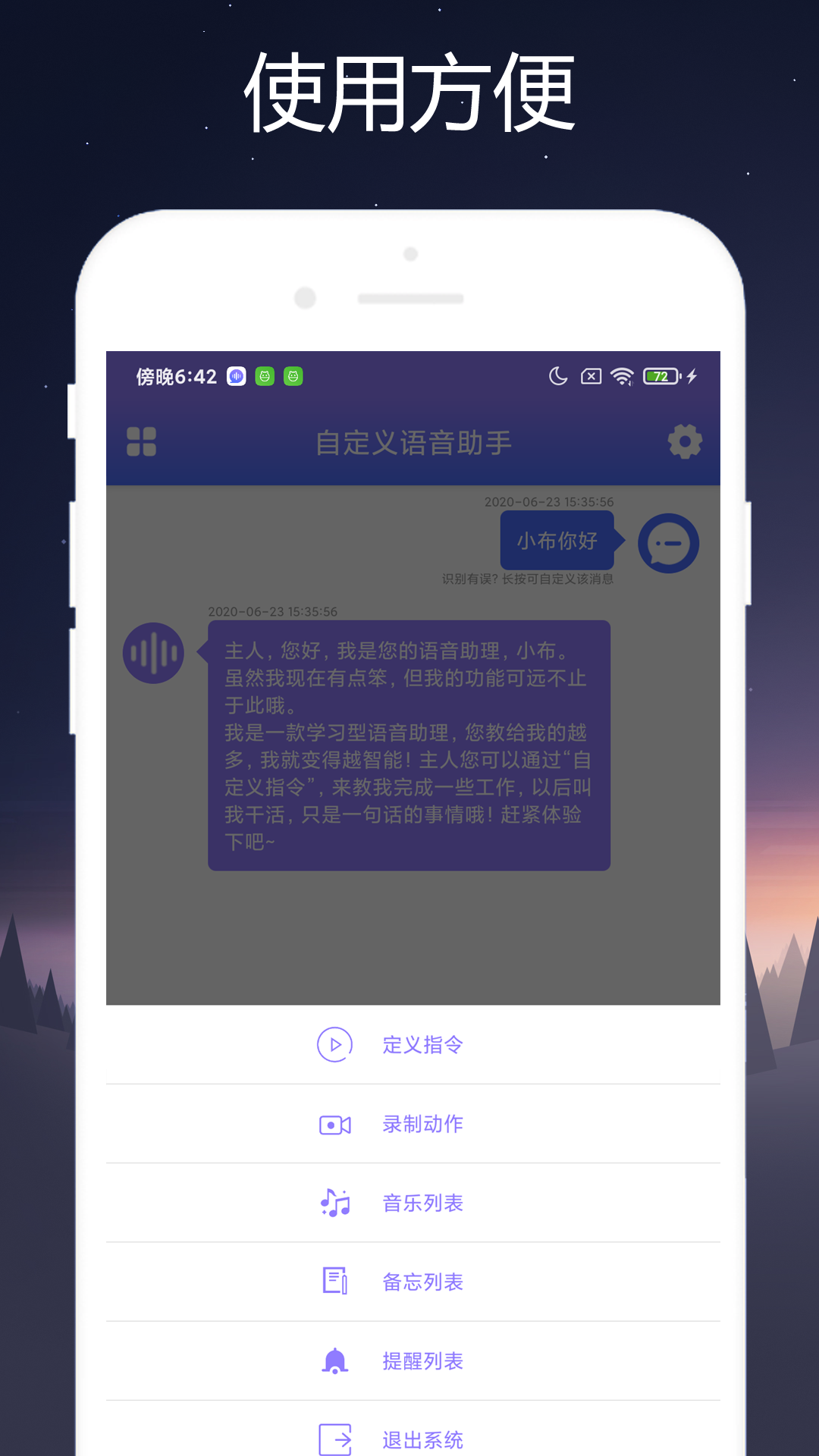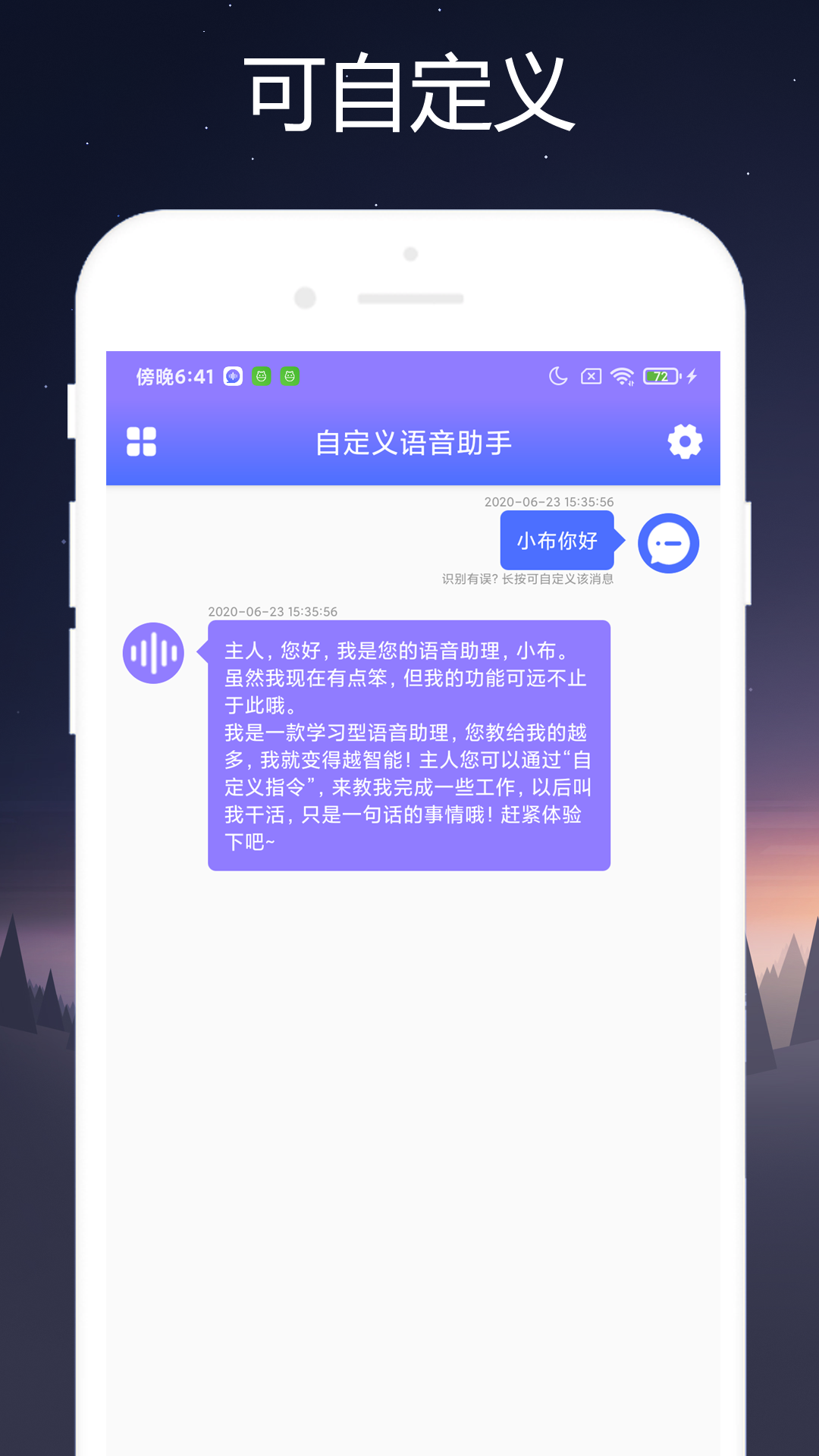 自定义APP是一款突破传统的智能语音助手,采用最新的人工智能算法,能够精准理解用户指令。不同于普通语音软件,它允许用户完全自定义唤醒词、响应方式和执行流程,甚至可以根据不同场景设置专属的语音交互方案。无论是简单的设备控制,还是复杂的工作流自动化,都能完美胜任。