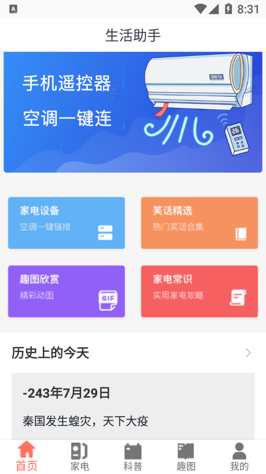 家电设备控制功能让您摆脱传统遥控器的束缚,通过手机即可轻松操控家中各类智能电器,实现远程开关、模式调节等操作。精选内容板块每日更新幽默段子和趣味视频,为您的生活增添欢乐色彩。趣图欣赏栏目汇集网络热门动图,让您在碎片时间享受视觉盛宴。家电常识板块提供专业的家电使用指南和保养建议,帮助您延长家电使用寿命。