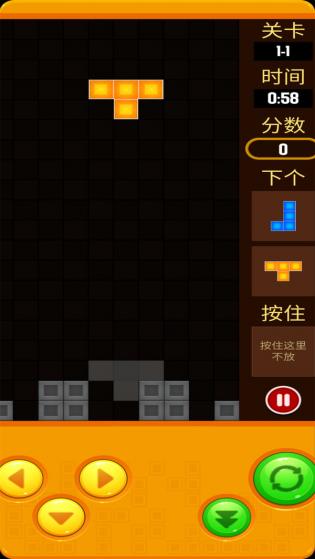 游戏规则简单易懂,通过合理放置方块来消除更多行数,保持游戏区域整洁。这不仅考验玩家的空间思维能力,还需要在极短时间内做出最佳决策。游戏采用多彩的方块设计,每种方块都有独特的颜色搭配,既美观又能有效区分不同形状。此外,游戏还加入了震动反馈效果,让消除方块时的爽快感倍增。