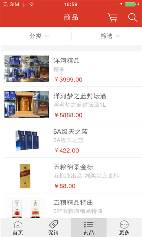商品展示:精心展示各类优质白酒,特别是洋河蓝色经典和洋河老字号系列,提供详细的产品信息和用户评价;