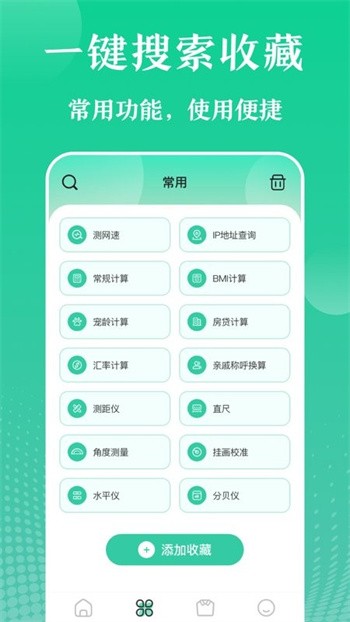一键搜索就可以添加应用,是日常生活中非常贴心的小工具箱;智能搜索功能可以快速定位所需工具,支持语音输入和关键词联想,让查找更便捷。常用功能可添加至收藏夹,实现个性化定制。