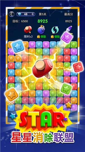 星星消除最大的优势在于其简单直观的操作方式,任何年龄段的玩家都能在几分钟内掌握基本玩法。游戏内容设计兼顾了不同年龄段玩家的需求,既有适合儿童的简单关卡,也有让成年人动脑思考的复杂挑战。