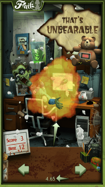 在这款游戏中,你可以尽情释放破坏欲,用各种奇葩方式折磨僵尸。从投掷爆炸熊到甩出锋利锯条,从高空坠下铁砧到投掷滚烫大锅,每一种道具都能带来独特的破坏效果。游戏特别设计了每日挑战系统,完成特定任务还能获得丰厚奖励。最有趣的是那份僵尸破坏清单,里面记录了各种脑洞大开的捣蛋方式,等着你来一一解锁。游戏中的物理引擎表现相当出色,看着僵尸被各种物品砸得东倒西歪的样子,绝对能让你开怀大笑。