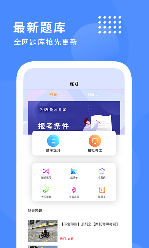 丰富做题模式:各种练习和模式,深入浅出有效的帮助学员快速学习驾考理论与实操。从基础练习到模拟考试,循序渐进提升应试能力。