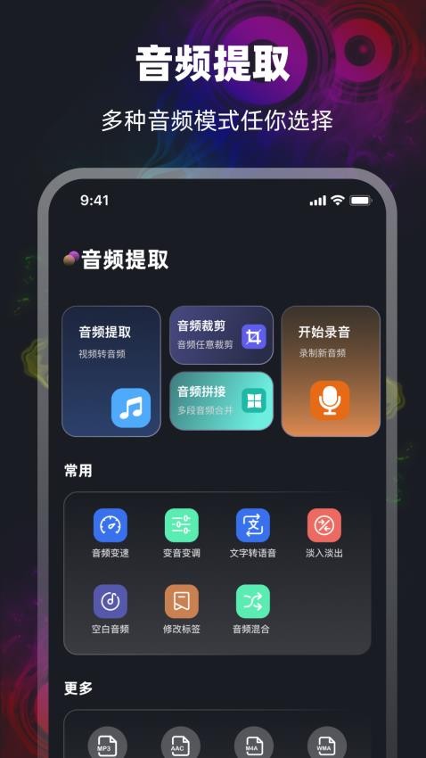 MP3提取App是一款功能强大且易于使用的专业音频处理工具,专为音乐爱好者、视频创作者和普通用户设计,能够满足各种音频编辑和优化的需求。无论您是想从视频中提取背景音乐,还是需要对录音进行精细剪辑和混音处理,这款软件都能提供完美的解决方案。它支持包括MP3、WAV、AAC等在内的多种音频格式转换,确保您的音频文件可以在不同设备和平台上流畅播放。此外,软件还提供音频合并与混音功能,让您可以自由创作个性化的音频内容,打造独一无二的音乐作品。简洁直观的操作界面配合强大的功能,使MP3提取App成为处理音频文件的首选工具。